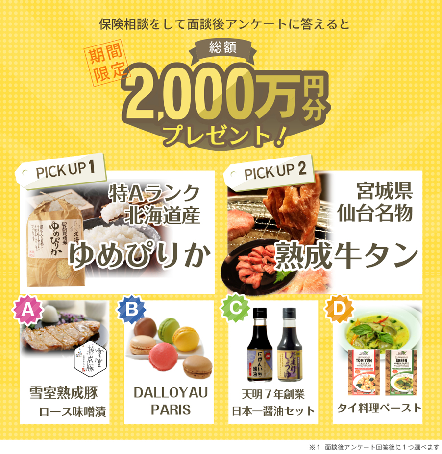 | 保険見直しラボ | 宮城県仙台名物「熟成牛タン」など食品6種類から選択 |